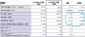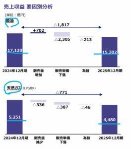 ・2026年12月期は減収減益見込みだが、油価、為替次第でブレる。