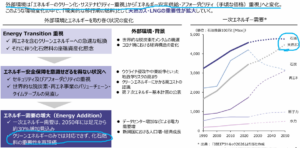 ウクライナ・ロシア戦争や、AIの発達やデータセンター需要もあり、化石燃料の重要性が再評価されている状況。